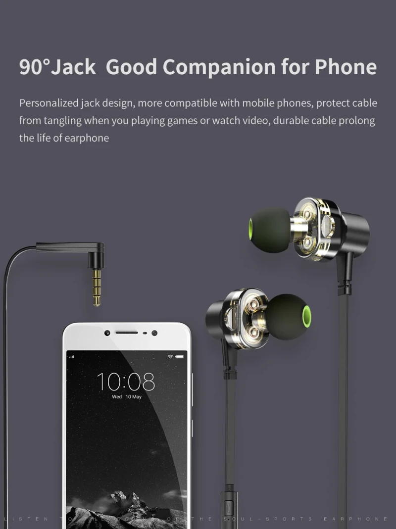– This hybrid earphone features dual drivers, which deliver clear and pure audio that stays true to the original sound