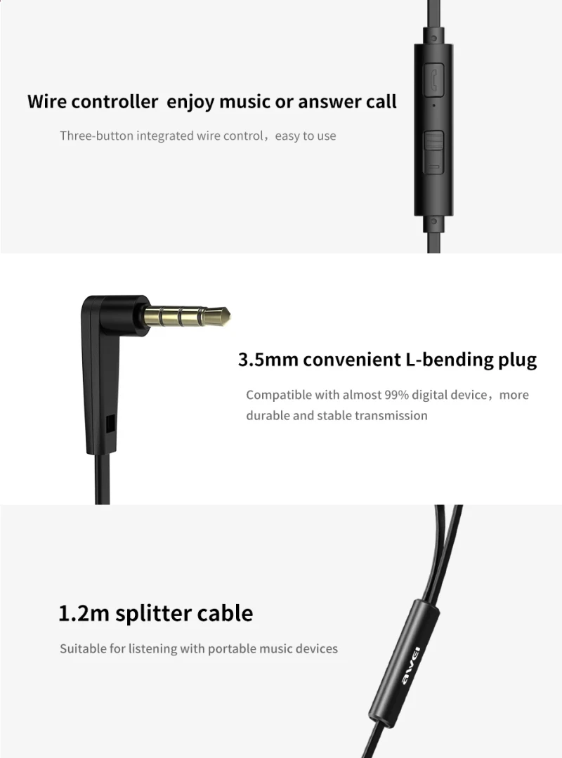 Ultra-soft Awei Z1 in-ear earphones conform instantly to your ears. 6mm dual drivers deliver clear sound and heavy bass while blocking ambient noise. And it also owns exquisite craftsmanship and fashionable appearance.