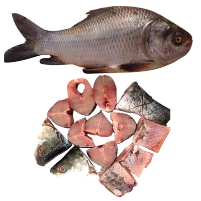Before cutting: 1.8 kg Source:CULTURED Catla is a fish with large and broad head, a large protruding lower jaw, and upturned mouth. It has large, greyish scales on its dorsal side and whitish on its belly. It reaches up to 182 cm (6.0 ft) in length and 38.6 kg (85 lb) in weight.In Khulna & Jessore area best quality Catla fish available.