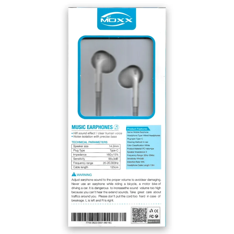 MOXX Music Type-C Earphone (MO-16c) | In-Ear Design | Input Type Type-C | Powerful Deep Bass