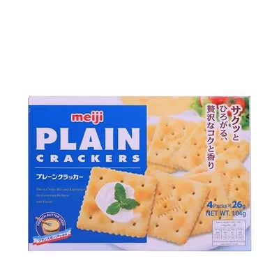 Meiji Plain Crackers are produced using a traditional long fermentation process which takes up to 24 hours to achieve the strong aroma and blend of a nice cracker. These crispy plain crackers are trans fat free and sugar free. They are also rich in flavour, can be eaten on its own or pair with spread, pate and cheese.