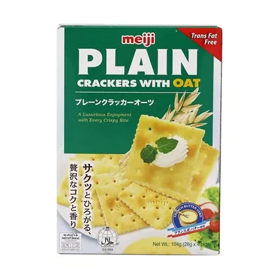 Experience a taste of luxurious crispiness in every bite with Meiji Plain Crackers with Oat or without Oat Box. Made using a special recipe that produces sugar free and trans fat free biscuits, these crackers are the perfect choice for a guilt free, healthy snack.