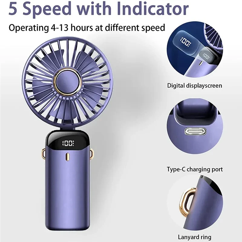 [High-Performance Battery]The battery fan operated by 5000mAh premium Rechargeable battery with high-performance and efficiency. You can bring this handheld mini hand fan for stroll,shopping or other outdoor activities without worry for battery