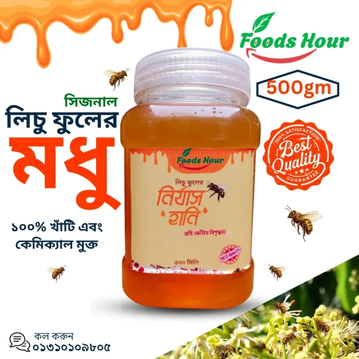 Different kinds of flower blooms in different season in Bangladesh. Thats why diffent kinds of honey produced in bangladesh like Mustard flower honey, litchi/lichu/lychee flower honey, natual chack honey , black cumin flower honey, sundarban natural chack honey etc. But in the field of taste, lychee flower honey is the best quality honey forever.